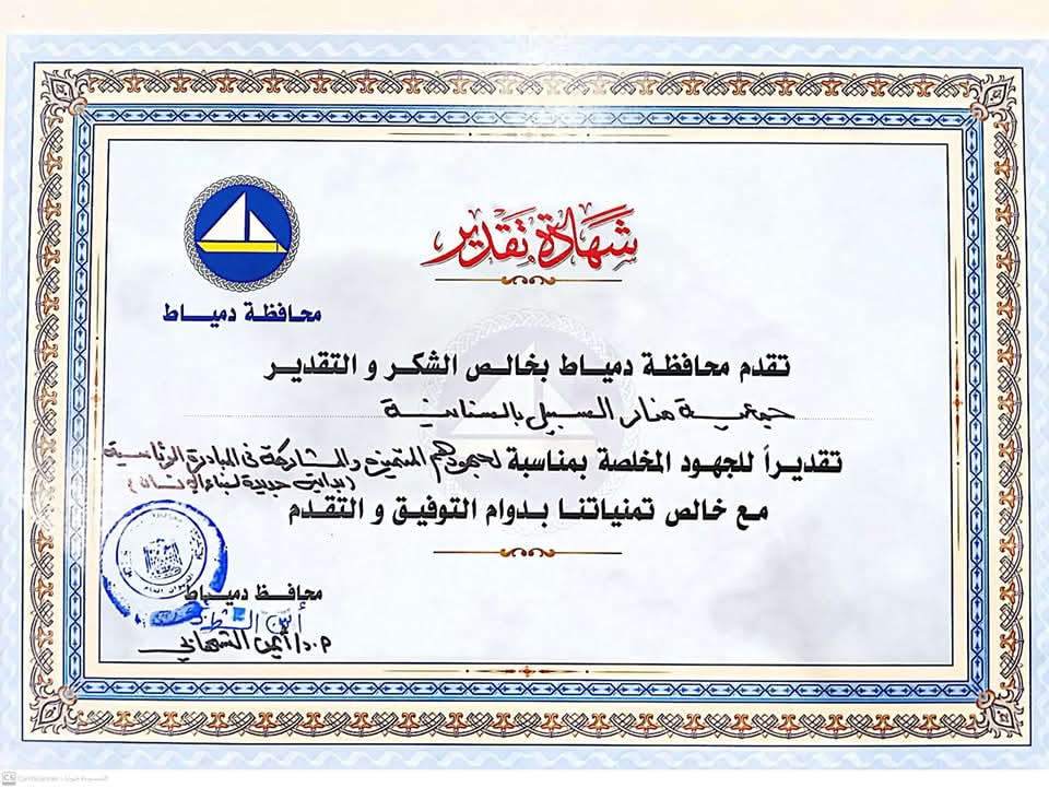 هذا إلى جانب تكريم الجمعيات الأهلية المشاركة بالمبادرة ” المؤسسة الخيرية بالسرو، جمعية المستثمرين بدمياط الجديدة، رابطة شباب كفر المنازلة ، توعية المرأة ورعايتها، المجمع الخيرى بشرباص، النهوض بالخدمات التعليمية والثقافية بالزرقا، تراحم للأعمال الخيرية، أنصار السنة بدمياط، صناع السعادة الخيرية بدمياط، الرعاية المتكاملة بميت الخولى ، مؤسسة حياة بدمياط، جمعية البر والتقوى، جمعية تنظيم الأسرة بدمياط، جمعية تنمية المجتمع بكفر البطيخ، جمعية دار الأرقم بالعطوى،