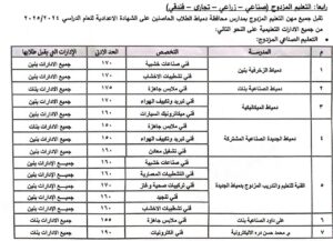 وأوضح الأستاذ “ياســر عمــاره” وكيل وزارة التربية والتعليم بدمياط، أن هذا القرار جاء لتلبية رغبات أولياء الأمور، بالإضافة إلى وجود أماكن شاغرة بالصف الأول الثانوي العام في بعض المدارس، مما يضمن عدم حرمان أي طالب مستحق من استكمال مسيرته التعليمية