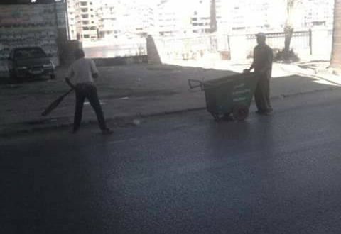 وفي أثناء العمل قام برفع الأتربة من علي جانبي الطرق والعمل الكثيف للكنس وأزاله المخلفات بعيدا عن هذه الطرق ذلك لأظهار المظهر الجمالي التي تميز هذه الطرق الهامة.