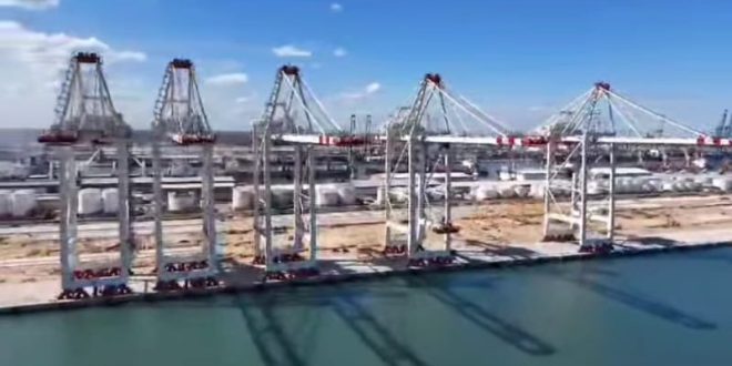 2. المحطة استقبلت مؤخرا ، أوناش رصيف عملاقة تتكون من 5 أوناش رصيف عملاقة مخصصة لخدمة تداول الحاويات ، كدفعة أولى من إجمال اوناش المحطة البالغ عددها 12 ونش والتي ستصل تباعاً و تعد من أحدث أنواع أوناش الرصيف العملاقة على مستوى العالم من انتاج شركة ( HHMC ) الصينية وحيث من المنتظر أن تُسهم بشكل كبير في زيادة كفاءة وسرعة عمليات الشحن والتفريغ الخاص والحاويات داخل المحطة ، كما تأتى تلك الأوناش العملاقة بتقنيات متقدمة وقدرات تُلبي متطلبات التعامل مع السفن الضخمة ومن إمكاناتها قدرات الرفع العالية حيث تمتاز الأوناش بقدرات رفع تتناسب مع الأوزان الثقيلة للحاويات الكبيرة ، والتي قد تصل الي ٧٥ طن كما أن لديها قدرة وصول الي ارتفاعات عالية حتي 57.5 متر من سطح الرصيف وهي كافية للتعامل مع السفن العملاقة التي تمتد لارتفاع ١١ حاوية مع طول الذراع الخارجي للونش ٧٢ متر مما يساهم في التعامل مع اكبر عرض لتلك السفن كما تأتى مزودة بأنظمة السلامة المتقدمة منها حساسات وكاميرات ونظم حماية لضمان سلامة العمليات والأفراد في موقع العمل علي الرصيف او السفينة بالإضافة إلى التكامل مع الأنظمة الرقمية حيث تدعم الأوناش الحديثة التكامل مع أنظمة إدارة الموانئ الذكية ، مما يسمح بتتبع العمليات بشكل لحظي وتحسين التنسيق بين كافة أقسام التشغيل كما تساهم هذه الإمكانيات في جعل الميناء قادرة على التعامل مع الأحجام المتزايدة من سفن الحاويات بسرعة ودقة ، مما ينعكس إيجاباً على زمن التشغيل في الميناء ويزيد من كفاءة العمليات اللوجستية