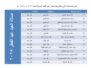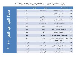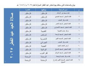 كتب ✍🏻 محمد الموجى مديرية الأوقاف بمحافظة دمياط تُعلن عن ساحات صلاة عيد الفطر المبارك