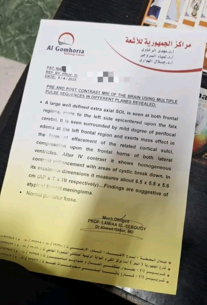 قام الفريق الطبي باستئصال ورم بالمخ لسيدة مسنه (٧٠سنه ) تعاني من ارتفاع ضغط الدم وارتفاع سكر بالدم
