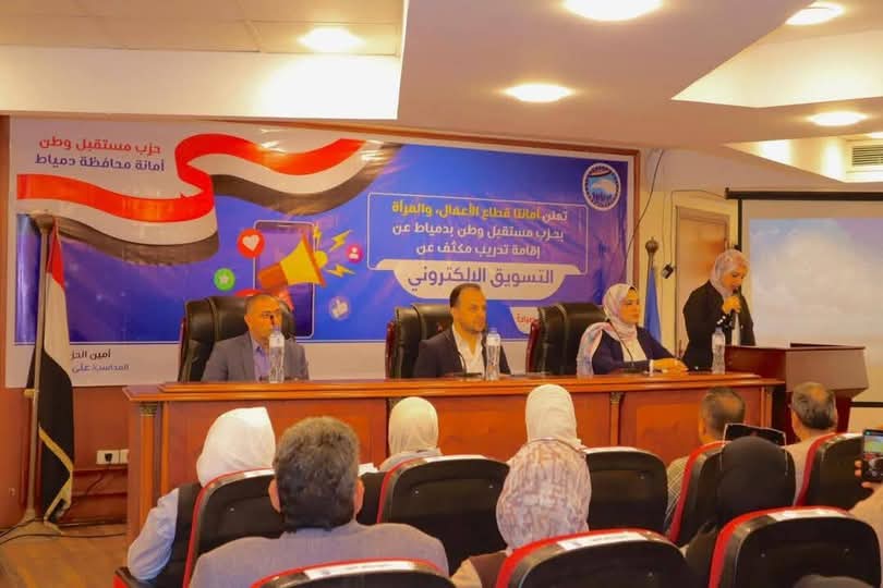 نظّمت أمانتا قطاع الأعمال والمرأة بحزب مستقبل وطن بمحافظة دمياط، فعالية مشتركة تمثلت في تدريب مكثف في مجال التسويق الإلكتروني، بالتعاون مع إحدى كبرى شركات التوزيع، وذلك بمقر الغرفة التجارية على كورنيش النيل، يوم الأحد، وسط حضور نسائي واسع وتفاعل لافت.