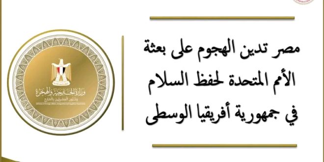 مصر تدين الهجوم على بعثة الأمم المتحدة لحفظ السلام في جمهورية أفريقيا الوسطى