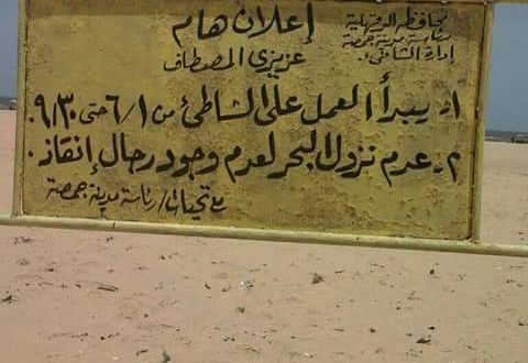 كت/طلال الجمل شئ لايوجد ولم نشاهد هذا من قبل ألا في برامج مواقف وطرائف حيث لافته ترحب بالمصطافين وتحزرهم لا تنزلو البحر لايوجد رجال أنتقاذ فماذا سيفعلون إذاً علي الشاطئ ؟