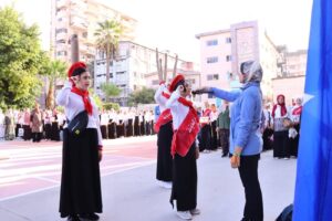 شهد الأستاذ الدكتور أيمن الشهابى محافظ دمياط ، اليوم ،طابور الصباح وأداء تحية العلم بمدرستى الإمام العادل الابتدائية و بنت الشاطئ الإعدادية بنات التابعتين لإدارة دمياط التعليمية، مع بداية العام الدراسى الجديد 2026/2025 ، وذلك بحضور العميد أركان حرب محمد خليفة المستشار العسكرى للمحافظة والأستاذ ياسر عمارة مدير مديرية التربية والتعليم والأستاذ سمير عتريس رئيس الوحدة المحلية لمركز ومدينة دمياط.