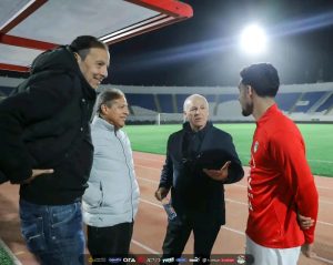 رئيس الاتحاد المصري لكرة القدم و خالد الدرندلي نائب رئيس الاتحاد وحماده الشربيني عضو مجلس الإدارة و رئيس البعثة.