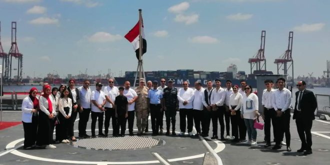 ولفيف من الشباب والفتيات الجامعي المتميز الذين أبدوا إعجابهم الشديد بقدرات القوات البحرية المصرية ومدي الجاهزية لحماية الأمن القومى المصرى على كافة الإتجاهات الإستراتيجية .