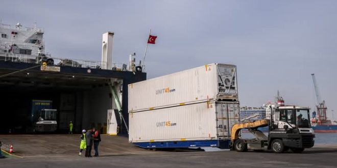 وخلال رحلاتها المنتظمة لميناء دمياط غادرت السفينة ( OLYMPOS SEAWAYS ) التابعة للخط الملاحي ( RORO ) الرابط بين مينائى دمياط و تريستا الإيطالي بعد ان قامت بتفريغ عدد 48 حاوية فارغة و مملوءة و عدد 30 تريلا فارغة و مملوءة بإجمالي وزن بضائع وارد 1224 طن ، كما قامت بتحميل عدد 15 حاوية و عدد 22 تريلا مملوءة ببضائع تصدير تشمل خضروات و فواكه و منسوجات وضفائر كهربائية بإجمالي وزن 723 طن متجهه إلي ايطاليا – هولندا – المانيا – انجلترا- سلوفيكيا – المجر .