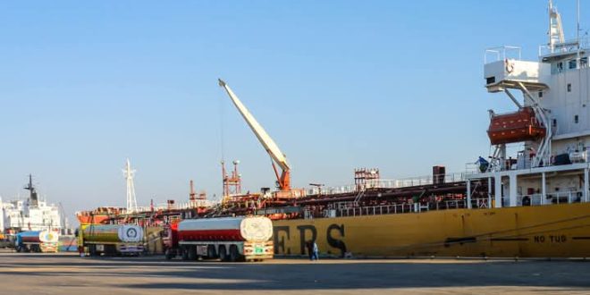 وقد بلغت حركة الصادر من البضائع العامة 42109 طن تشمل : 19446 طن يوريا و 9315 طن كلينكر و 3800 طن رمل و 2403 طن حديد و 7145 طن بضائع متنوعة .
