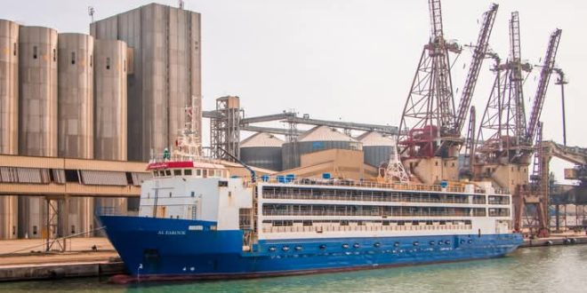 ووصل رصيد صومعة الحبوب والغلال للقطاع العام بالميناء من القمح 137203 طنًا … بينما بلغ رصيده في مخازن القطاع الخاص 94805 طنًا .