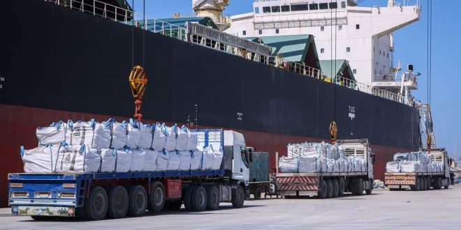 ووصل رصيد صومعة الحبوب والغلال للقطاع العام بالميناء من القمح 83266 طنًا … بينما بلغ رصيده في مخازن القطاع الخاص 132298 طنًا ، بينما بلغت حركة الشاحنات دخولًا وخروجًا عدد 3362 حركة .