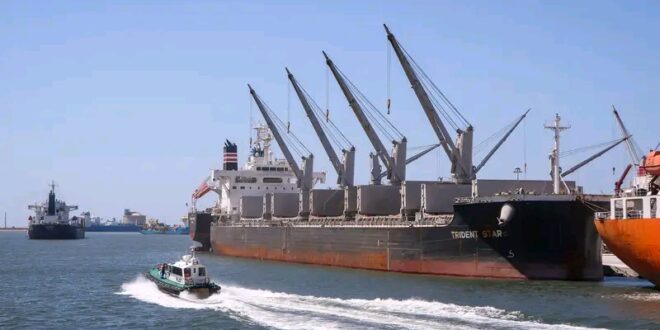 ووصل رصيد صومعة الحبوب والغلال للقطاع العام بالميناء من القمح 56552 طنًا … بينما بلغ رصيده في مخازن القطاع الخاص 28282 طنًا .