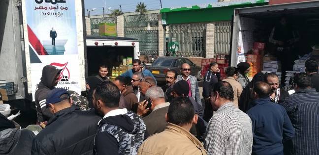 واحتشدوا حول سيارات محملة بالأغذية والأسماك التي تمثل سلع أساسية للمواطن البورسعيدي، وذلك أمام بوابة مجمع المصانع بالمنطقة الحرة للاستثمار ببورسعيد.