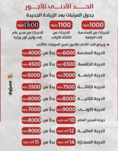 الزيادات لجميع العاملين من الدرجة السادسة حتى الممتازة موحدة بالحد الأدنى ١١٠٠ جنيها شهريا