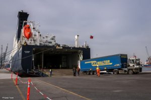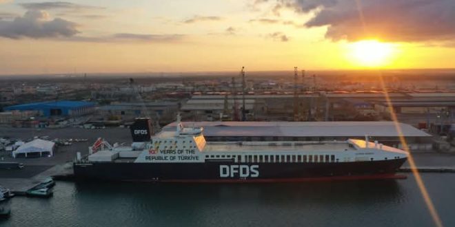 وخلال رحلاتها المنتظمة لميناء دمياط غادرت السفينة (OLYMPOS SEAWAYS ) التابعة للخط الملاحي ( RORO ) الرابط بين مينائى دمياط و تريستا الإيطالي بعد ان قامت بتفريغ عدد 7 حاوية و عدد 28 تريلا فارغة و مملوءة و رأس شاحنة بإجمالي وزن بضائع وارد 354 طن ، كما قامت بتحميل عدد 7 حاوية و عدد 13 تريلا مملوءة ببضائع تصدير تشمل خضروات و فواكه و منسوجات وضفائر كهربائية بإجمالي وزن 354 طن متجهه إلي ايطاليا – هولندا – المانيا – انجلترا- سلوفيكيا – الدنمارك