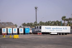 وقد بلغت حركة الصادر من البضائع العامة 38068 طن تشمل : 15575 طن يوريا و 2788 طن جبس معبأ و 9050 طن كلينكر و 10655 طن بضائع متنوعة .