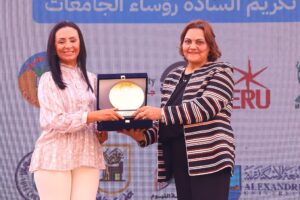 وكرمت الدكتورة مايا مرسي كلا من الدكتورة دينا أبوزيد عميد كلية الإعلام بجامعة 6 أكتوبر، ودكتور سعيد علام نائب رئيس جامعة الإسكندرية لشئون خدمة المجتمع وتنمية البيئة، ودكتور محمد وائل نائب رئيس جامعة جنوب الوادي لشئون الدراسات العليا، والدكتور سامي البهنسي نائب رئيس جامعة الأزهر.