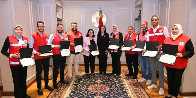 المهندسة مرجريت صاروفيم نائبة وزيرة التضامن الاجتماعي، والأستاذ أيمن عبد الموجود الوكيل الدائم لوزارة التضامن الاجتماعي، والدكتورة آمال إمام المديرة التنفيذية للهلال الأحمر المصري، والدكتور أحمد عبد الرحمن رئيس الإدارة المركزية للحماية الاجتماعية.