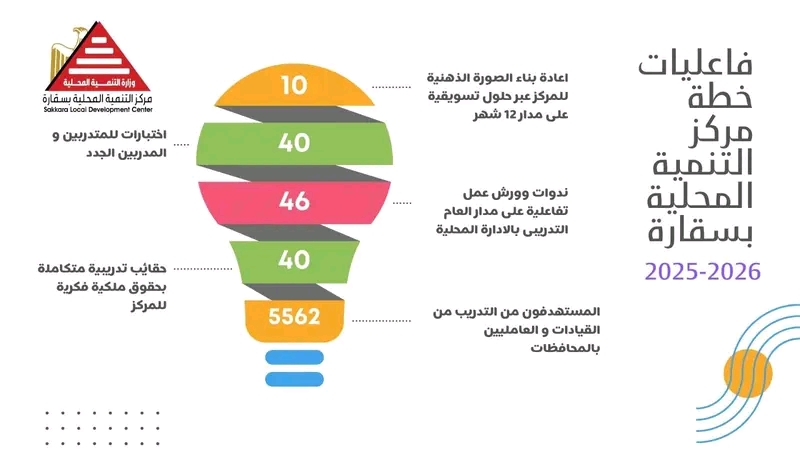 ومن جانبه أشار الدكتور عصام الجوهري مساعد وزيرة التنمية المحلية للتدريب والتطوير والتحول الرقمي والمشرف على مركز سقارة إلى توجيهات السيدة وزيرة التنمية المحلية بالإهتمام بتأهيل وإعداد قيادات من أبناء المحليات بمركز بسقارة ، ذراع الوزارة التدريبي و البحثى الذي يحقق رؤيتها وأهدافها في بناء قدرات العاملين وقيادات الإدارة المحلية على مختلف مستوياتها الإدارية ، وتدعيمهم بالمواد العلمية والمدربين و تطبيق الفاعليات من اختبارات و ورش عمل وإنتاج حقائب تدريبية وتسويق إلكترونى وبرامج تدريب أونلاين للمركز و توسيع دائرة الاستعانة بالخبراء والمتخصصين والكوادر الفنية والإدارية من خارج المركز .