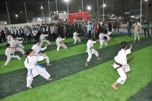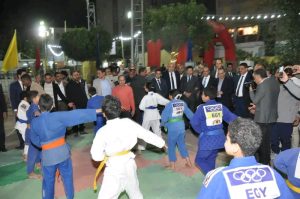 كما قام الوزيران والمحافظ بتفقد الأنشطة داخل اروقة النادي عقب عمليه الافتتاح للملعب ووضع حجر الأساس حيث شاهدوا العديد من الأنشطة الرياضية والشبابية الموجودة داخل النادي