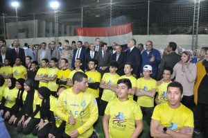 **الوزيران والمحافظ يتفقدوا نادي الشبان المسلمين ويفتتحوا ملعب للنجيل الصناعي **