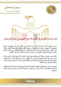 📌 مصر ترحب بالتوصل إلى اتفاق سلام بين جمهوريتي أرمينيا وأذربيجان