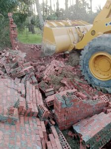 تنفيذاً لتوجيهات السيد معالي أ.د.م/ أيمن الشهابي محافظ دمياط _ بشأن التصدي لظاهرة البناء المخالف والتعدى على الأرض الزراعية وبناء على تعليمات الاستاذ رشدى عبد القادر صيام – رئيس مركز ومدينة كفر البطيخ تم القيام بحملة لإزالة عدد 2 حالة تعدى بالبناء المخالف الأولى بناء مخالف بالبساتين علي مساحه 150 متر بغرض عمل دور ارضي والثانية عبارة سور من الطوب البلوك الابيض من ضلعين حول مساحه 100متر بالبساتين وتمت الازاله تحت إشراف الإدارة الهندسية وفى وجود الاستاذ محمد عبد السلام نائب القرى وتمت الازالة ولازالت المتابعة مستمرة لوقف أعمال البناء المخالف