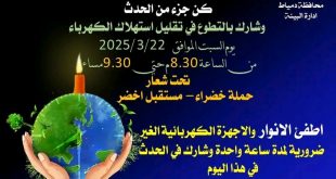 أكمل القراءة »” احتفالاً بساعة الأرض … محافظة دمياط تدعو المواطنين للمشاركة الإيجابية فى تخفيف الأحمال وإطفاء الأنوار السبت القادم لمدة ساعة “