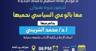 أكمل القراءة »مستقبل وطن بدمياط الجديدة يعقد.ندوة توعوية بعنوان معا بالوعي السياسي نحميها يحاضرها الدكتور محمد الشربيني أستاذ الاعلام بجامعة دمياط