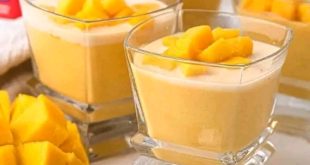 قدمتها لكم ✍🏻 حبيبة ياسين المكونات:- ● 4 كوب عصير مانجو مركز ● ½ كوب سكر أو سكر حسب الرغبه ● 4 ملعقة كبيرة نشا ● مانجو قطع للتزيين طريقة التحضير يخلط عصير المانجو والسكر والنشا يوضع الخليط في إناء على النار ويقلب حتى الغليان ويكون القوام كريمي يصب …